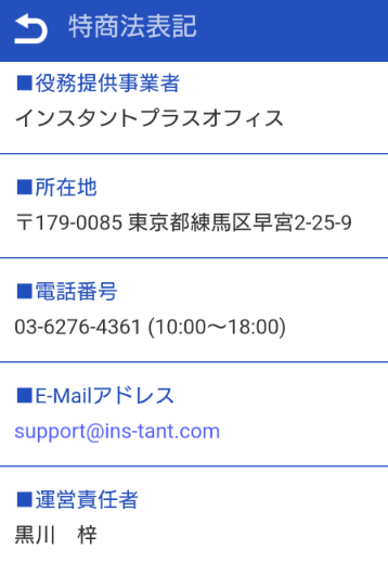 E-Mailアドレス:support@ins-tant.com