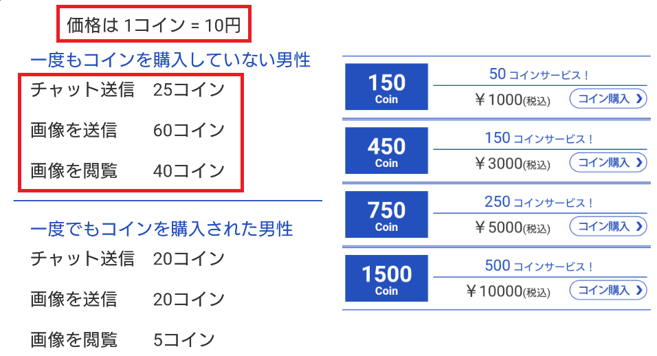 一度コインを購入すると安くなるというのも罠だ!安くなって1通200円とか鬼のように高い。