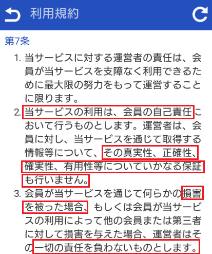 ・騙されても自己責任だと利用規約に書かれている!