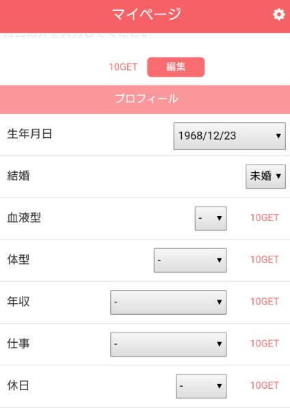 画像も一切登録しないで年齢は48歳とだけ入力。他は登録時から一切変更しない。