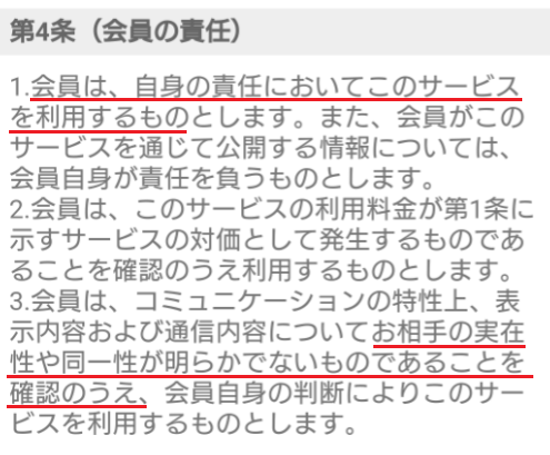 サクラとやりとりした結果出会えなくて一切の責任を負わないと書かれているんだぞ!