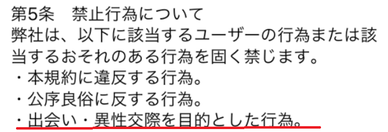 そしてアプリの利用において異性との出会いを目的として利用する事禁止しているのだ!