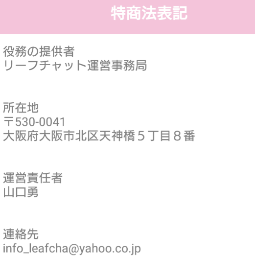 役務の提供者:リーフチャット運営事務局