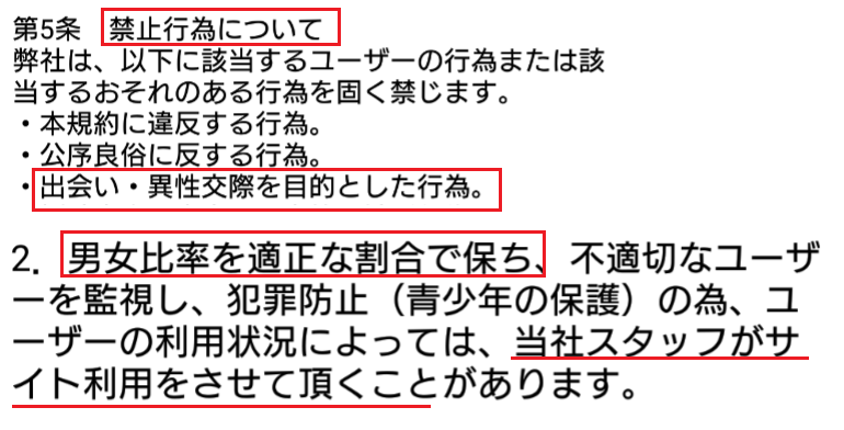 出会いや異性交際での目的を禁止して、男女比率を適正な割合で保つために当社スタッフがサイト利用をさせて頂くとサクラ行為を全面的に求めているのだ。