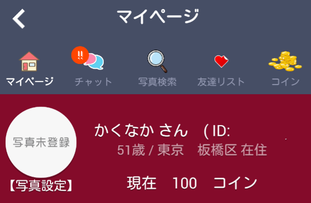 画像も一切登録しないで年齢は51歳とだけ入力。詳細プロフィールも全てナイショで一切何も入力しない。