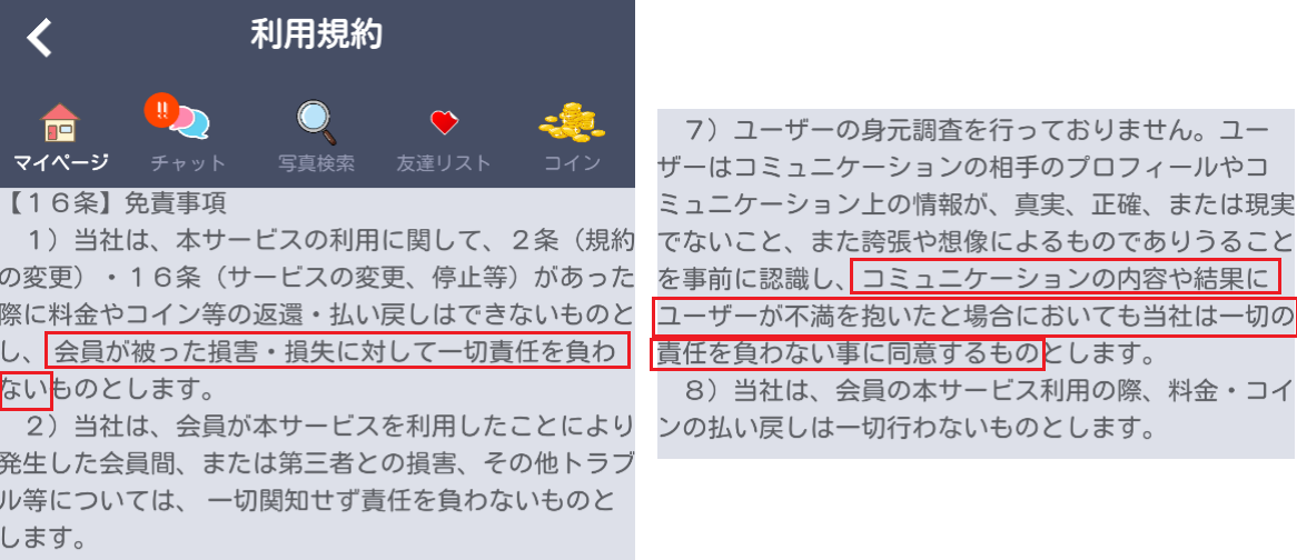 サクラとやりとりした結果出会えなくて不満を抱いても当社は一切の責任を負わないと書かれている!