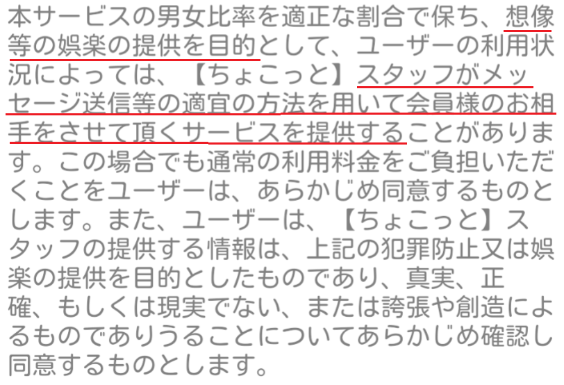 利用規約を詳細まで読むと、サクラを100%認めている文章があります。