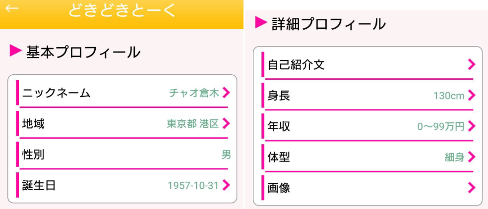 出会い系アプリの「どきどきとーく」プロフィール