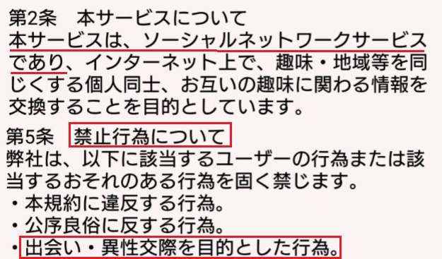 最後に説明するけど利用規約では出会いを禁止しているので当然です。