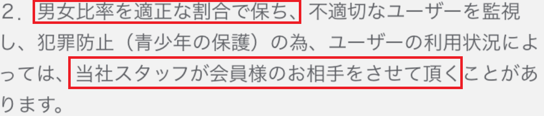男女比率を保つ為に、運営が会員様のお相手をすると書いてある。