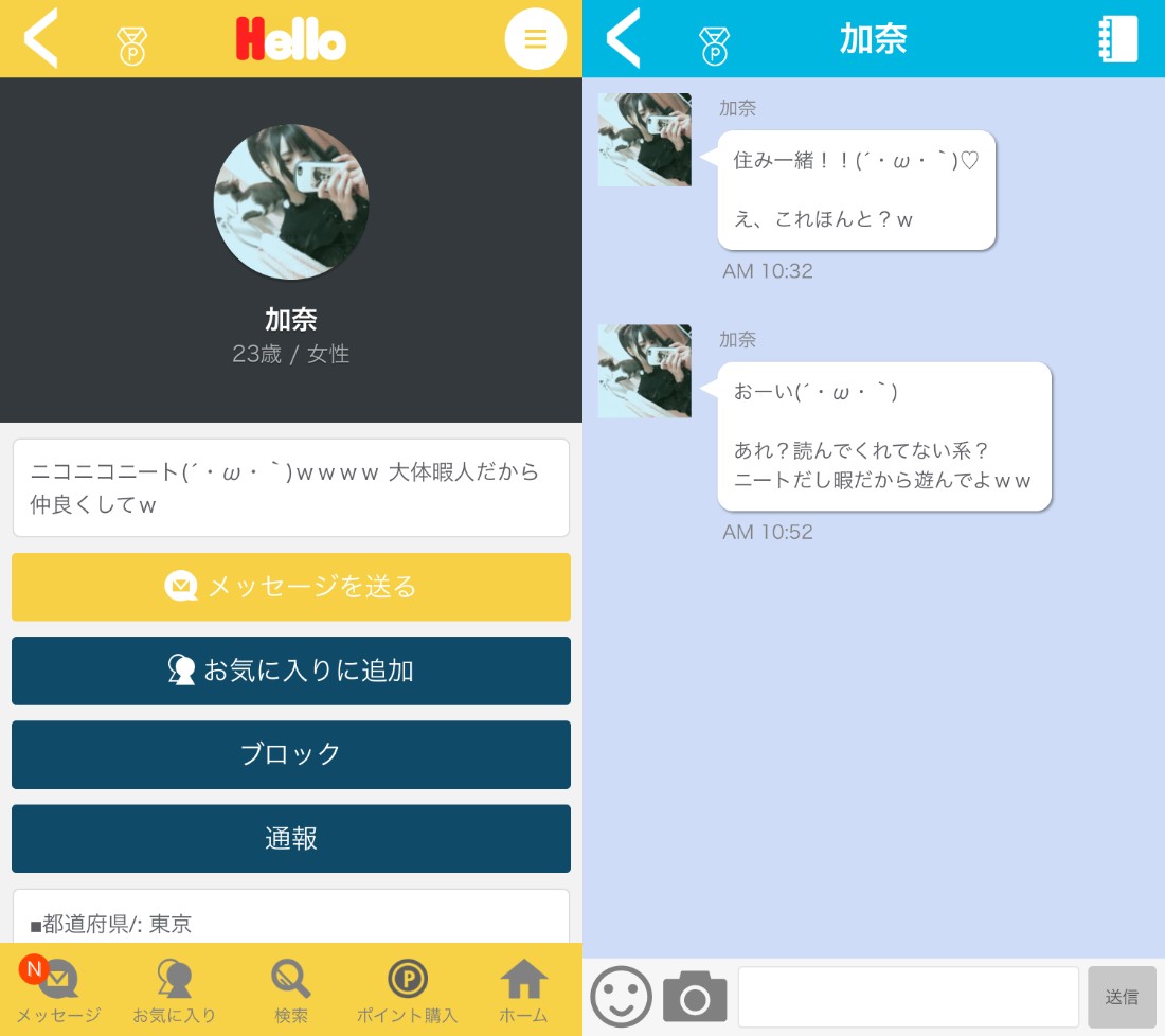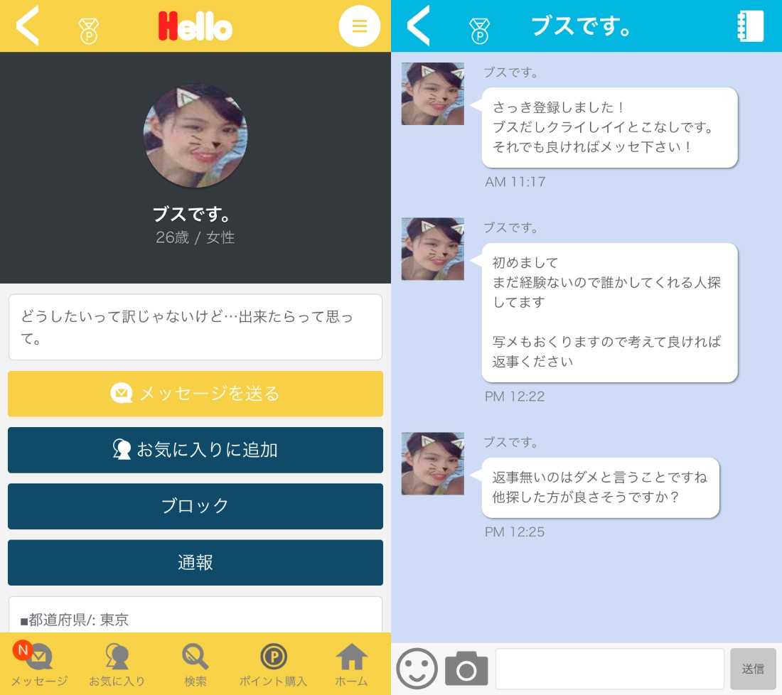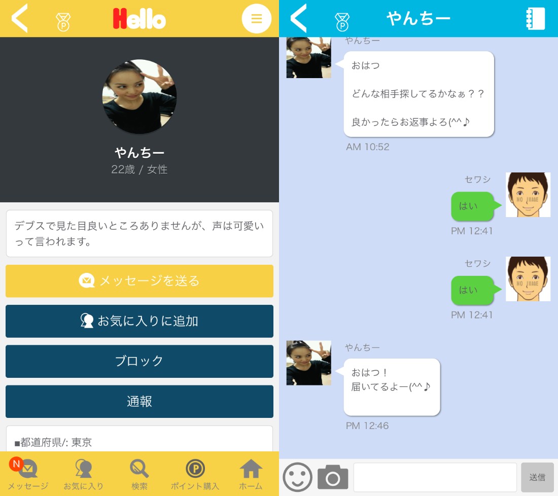 ■出会い系アプリ「hello~ハロー」サクラ確定!