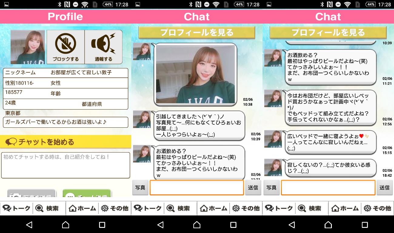 運営者が作り出した架空のキャラクターであるサクラからメッセージを送って、返信してきたユーザーにお金を払わせるだけの簡単な作り。