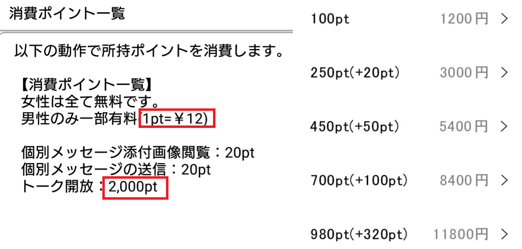 この料金表を見れば詐欺出会い系アプリと言うのがわかるだろう。